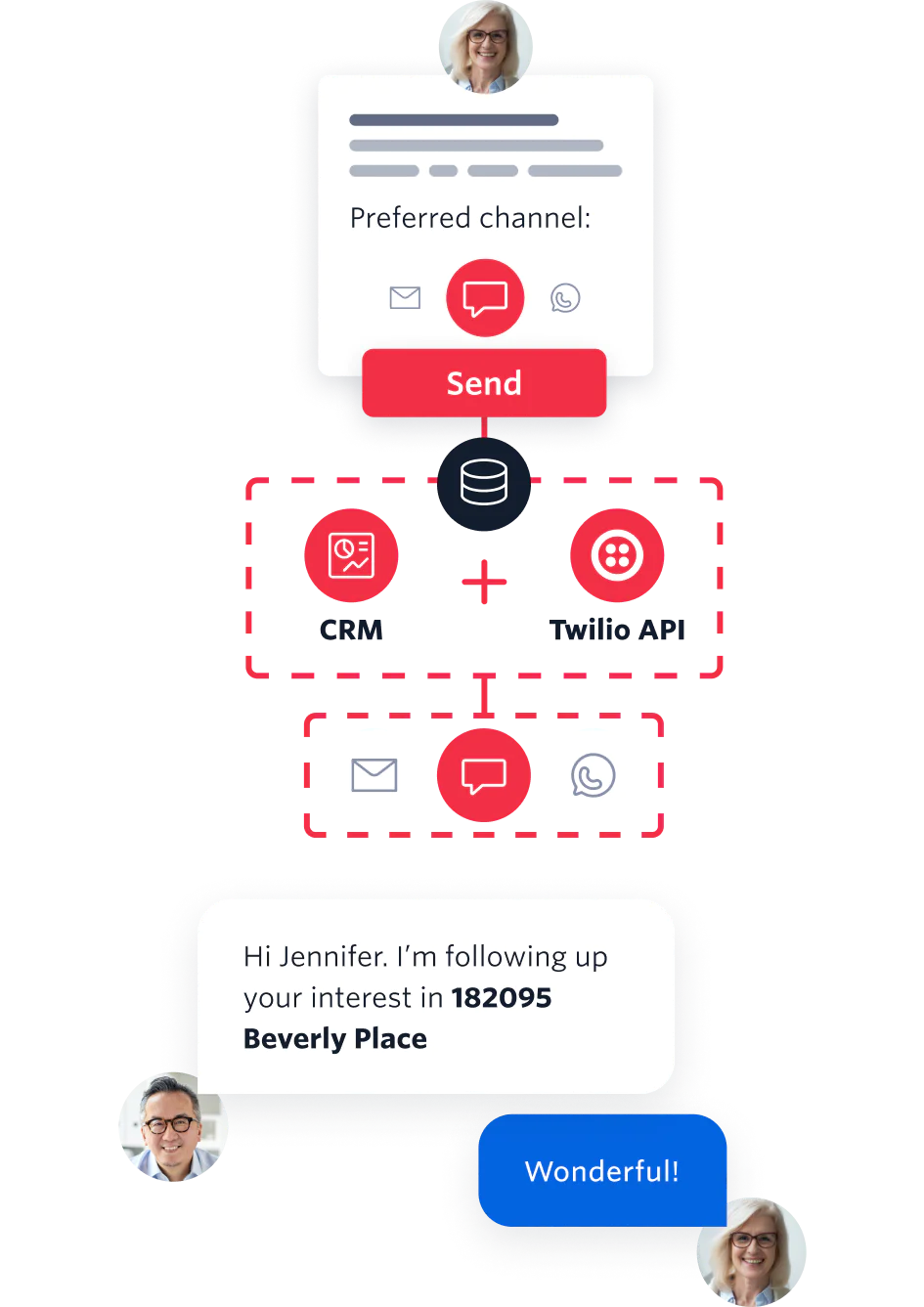 When a lead comes in, it’s important to respond quickly. With Twilio, you can easily set up real-time lead notifications via SMS, email, WhatsApp, or voice so you never miss a sales opportunity.